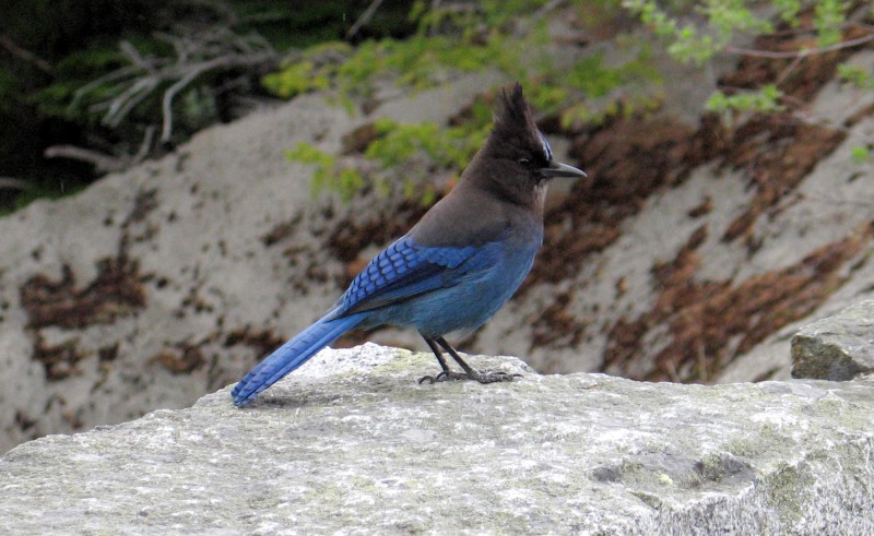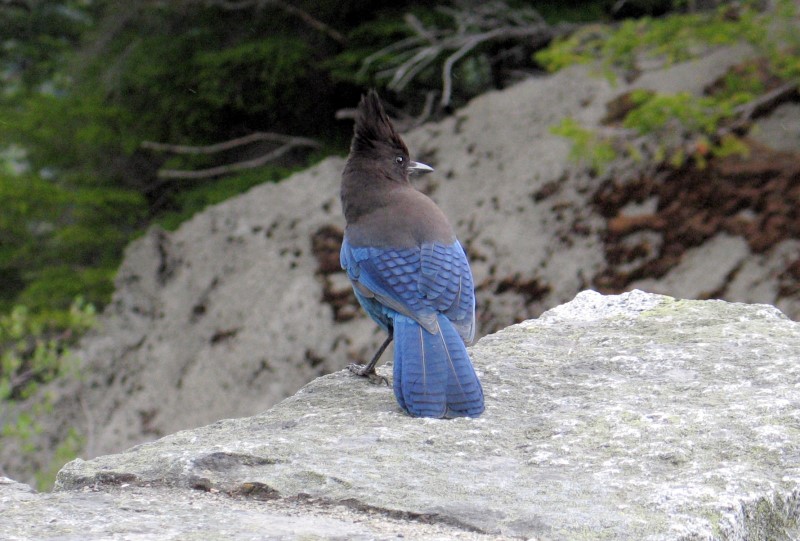 I'm not really into birds, but I think steller's jays are handsome. This one landed on a rock wall and posed for me as I turned on my camera.