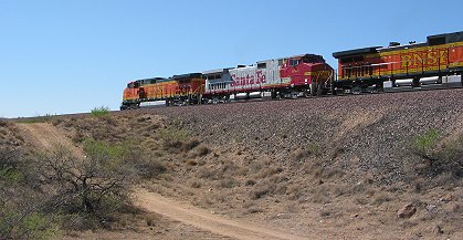 This shot shows how 66 paralleled the BNSF tracks. Incidentally, looking for roads alongside railroad tracks on a map is a great way to locate older alignments of highways. |