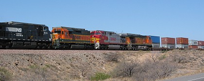 Like many cross-country trains these days, this one was pulling mostly containers that could be hauled away by trucks. |
