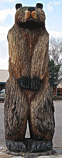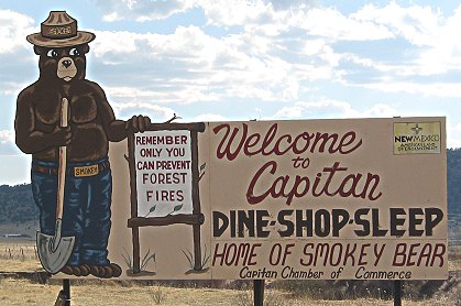 A metal Smokey like the one at Smokey Bear Vista was beside another welcome sign near an antique store. |