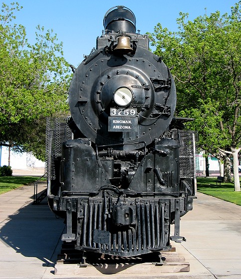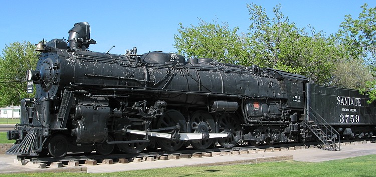There was a Santa Fe locomotive in a park on the west side of town. |
