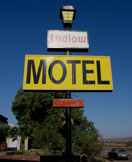 The sign for the Ludlow Motel was simple, but it was a welcome sight after 110 miles of desert cycing. |