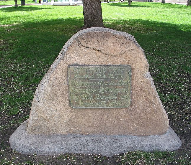 Since Prescott was the first capital of Arizona, it was appropriate that the town had a statehood tree, planted February 14, 1912. |