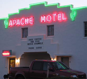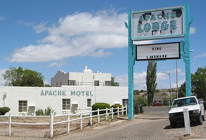 The Apache Lodge was a distinctive old motel. Notice the saguaro cactus style of the sign posts. |