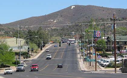 A white " P" for " Prescott" sat atop a hill east of town. |