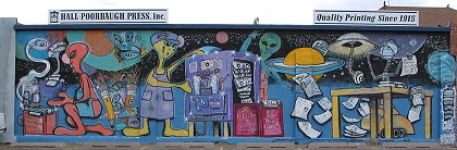" Our printing is... out of this world," said this mural for Hall-Poorbaugh Press. |